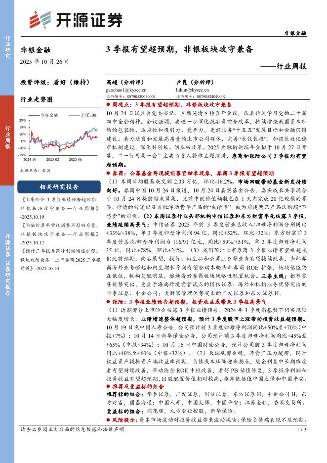 开源证券:非银金融行业周报:3季报有望超预期,非银板块攻守兼备.pdf