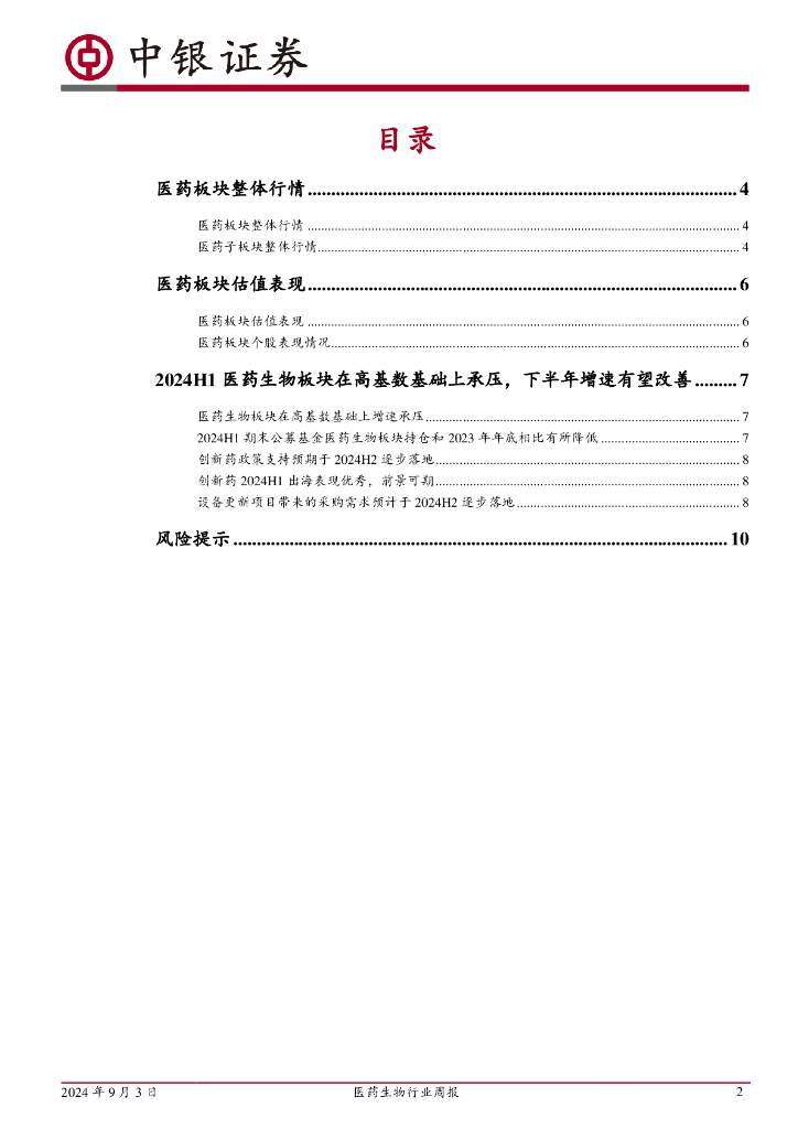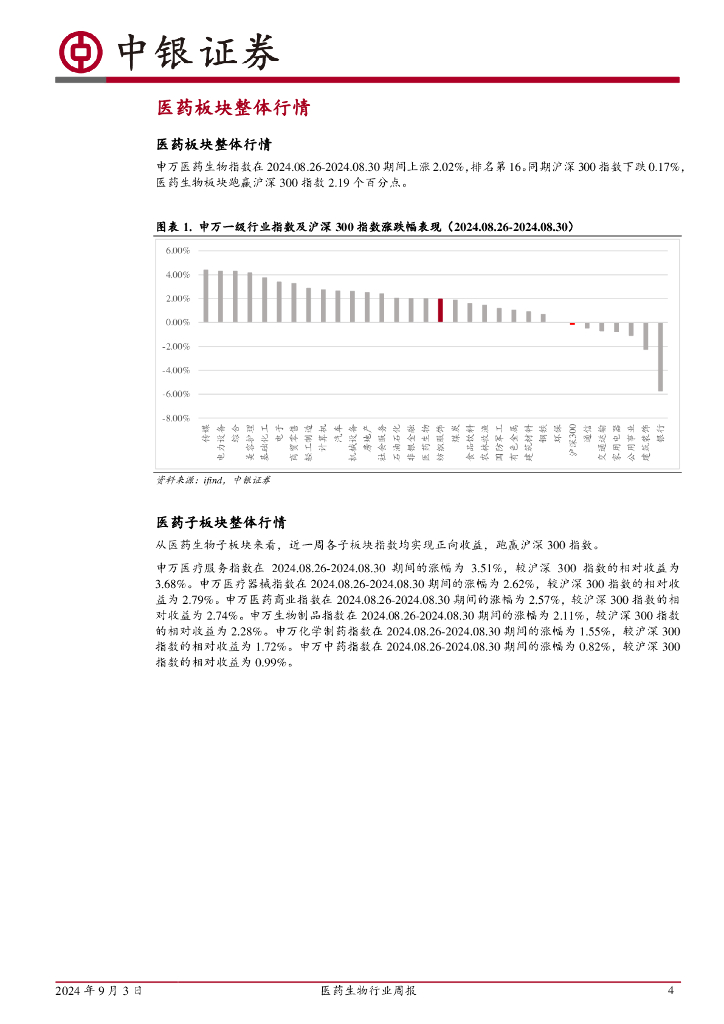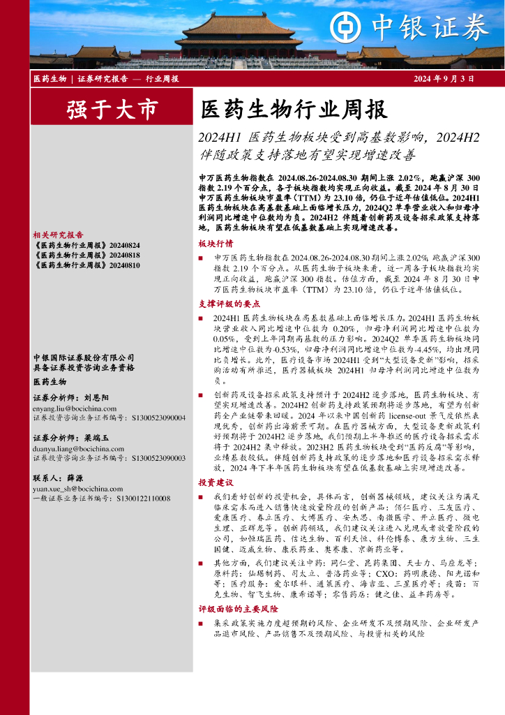 中银证券:医药生物行业周报:2024H1医药生物板块受到高基数影响,2024H2伴随政策支持落地有望实现增速改善.pdf