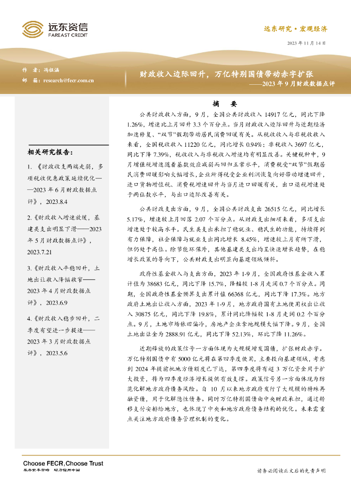远东资信:财政收入边际回升,万亿特别国债带动赤字扩张——2023年9月财政数据点评.pdf