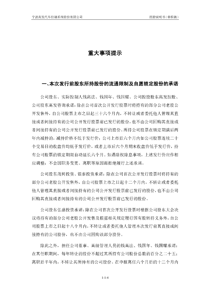 宁波高发汽车控制系统股份有限公司上交所主板IPO上市招股说明书.pdf