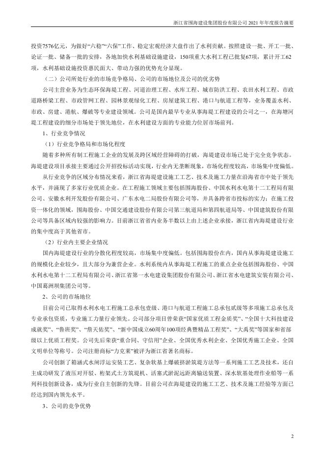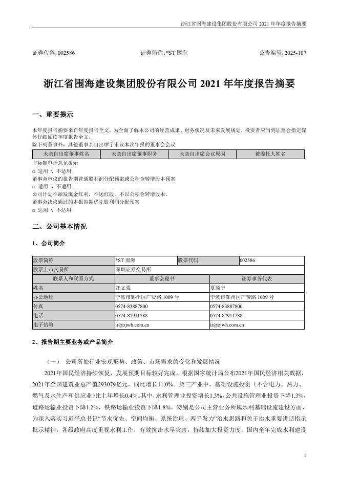 002586-*ST围海:2021年年度报告摘要.pdf