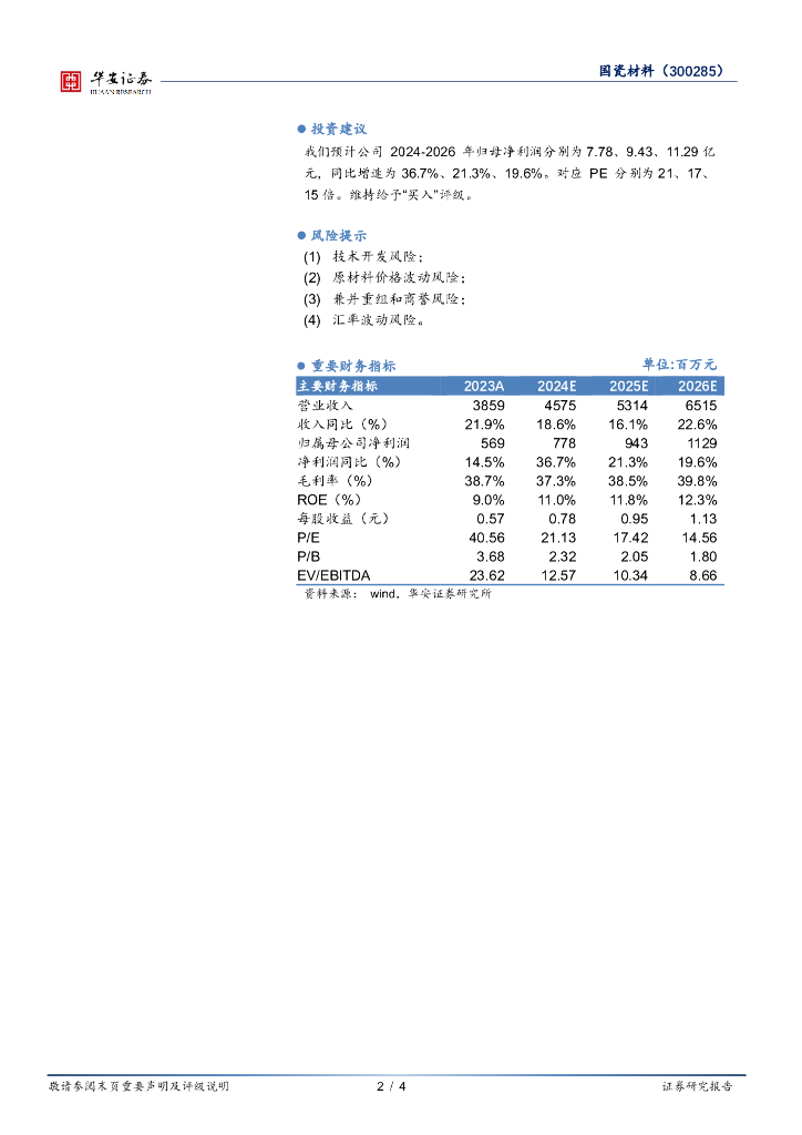 华安证券:国瓷材料(300285)-24年Q2业绩环比提升,多板块业务持续增长.pdf