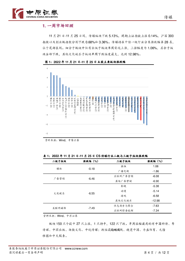 中原证券:传媒行业周报:《阿凡达:水之道》定档有望缓解短期压力;10月游戏市场环比有所改善.pdf