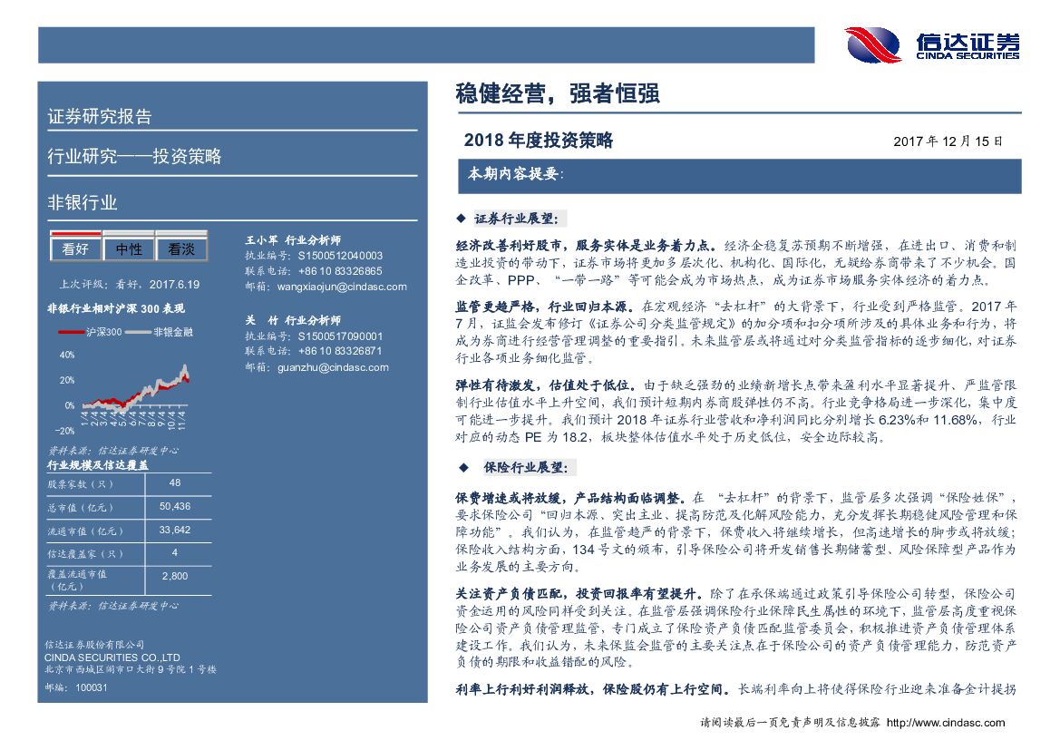 信达证券:非银行业2018年投资策略:稳健经营,强者恒强.pdf