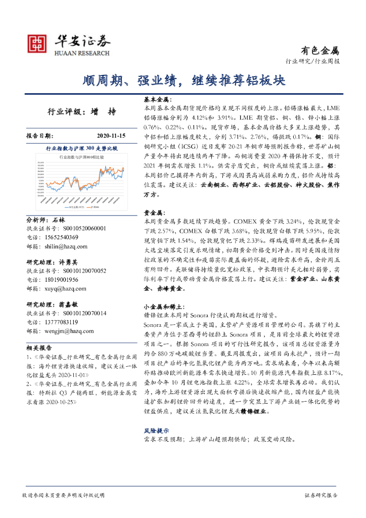 华安证券:有色金属行业周报:顺周期、强业绩,继续推荐铝板块.pdf