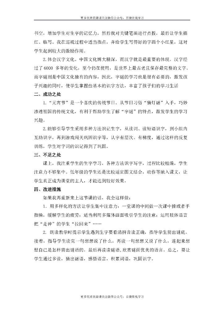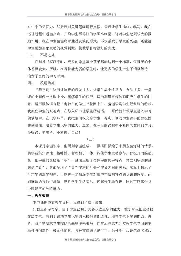 一年级语文下册识字4 猜字谜 教学反思.doc