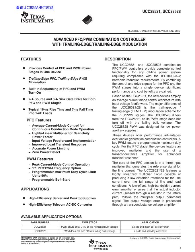 TEXAS INSTRUMENTS UCC28521 数据手册.pdf