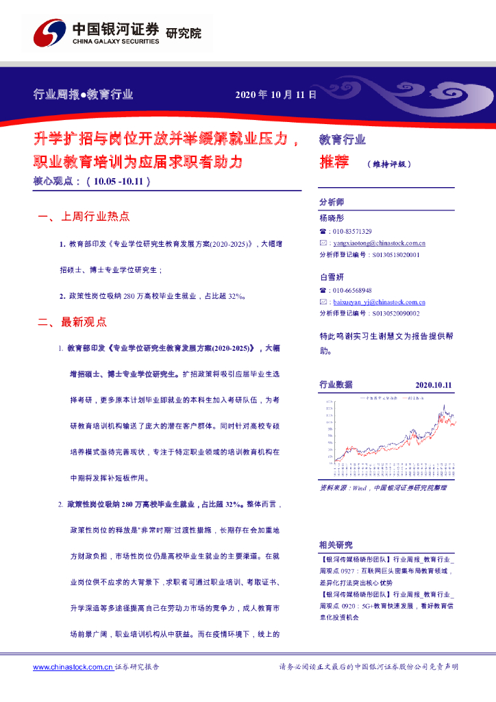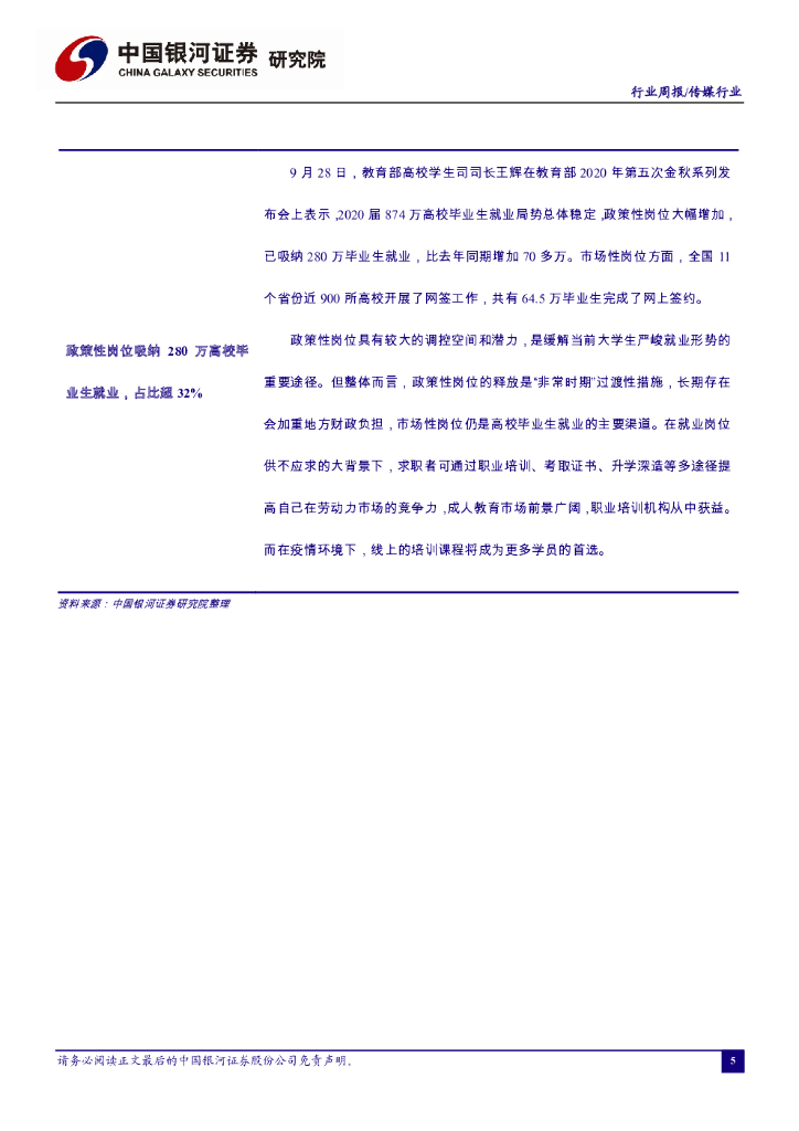 中国银河:教育行业周报:升学扩招与岗位开放并举缓解就业压力,职业教育培训为应届求职者助力.pdf