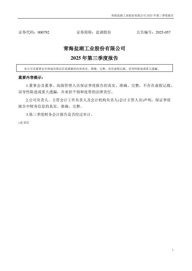 000792-盐湖股份:2025年三季度报告.pdf