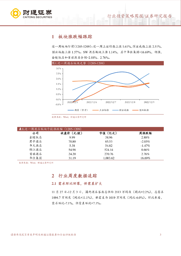 财通证券:酒店行业周度数据跟踪:防控政策优化初期,RevPAR环比回落.pdf