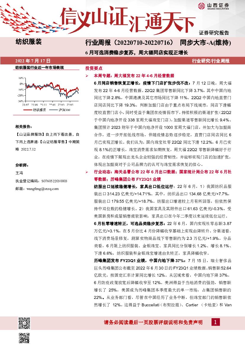 山西证券:纺织服装行业周报:6月可选消费稳步复苏,周大福同店实现正增长.pdf