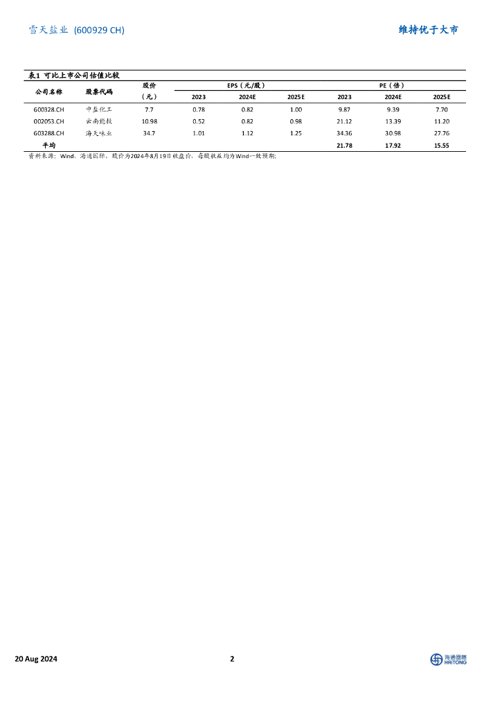 海通国际:雪天盐业(600929)-24H1扣非净利润同比降14.3%,食用盐及盐化工产品销量同比增加.pdf