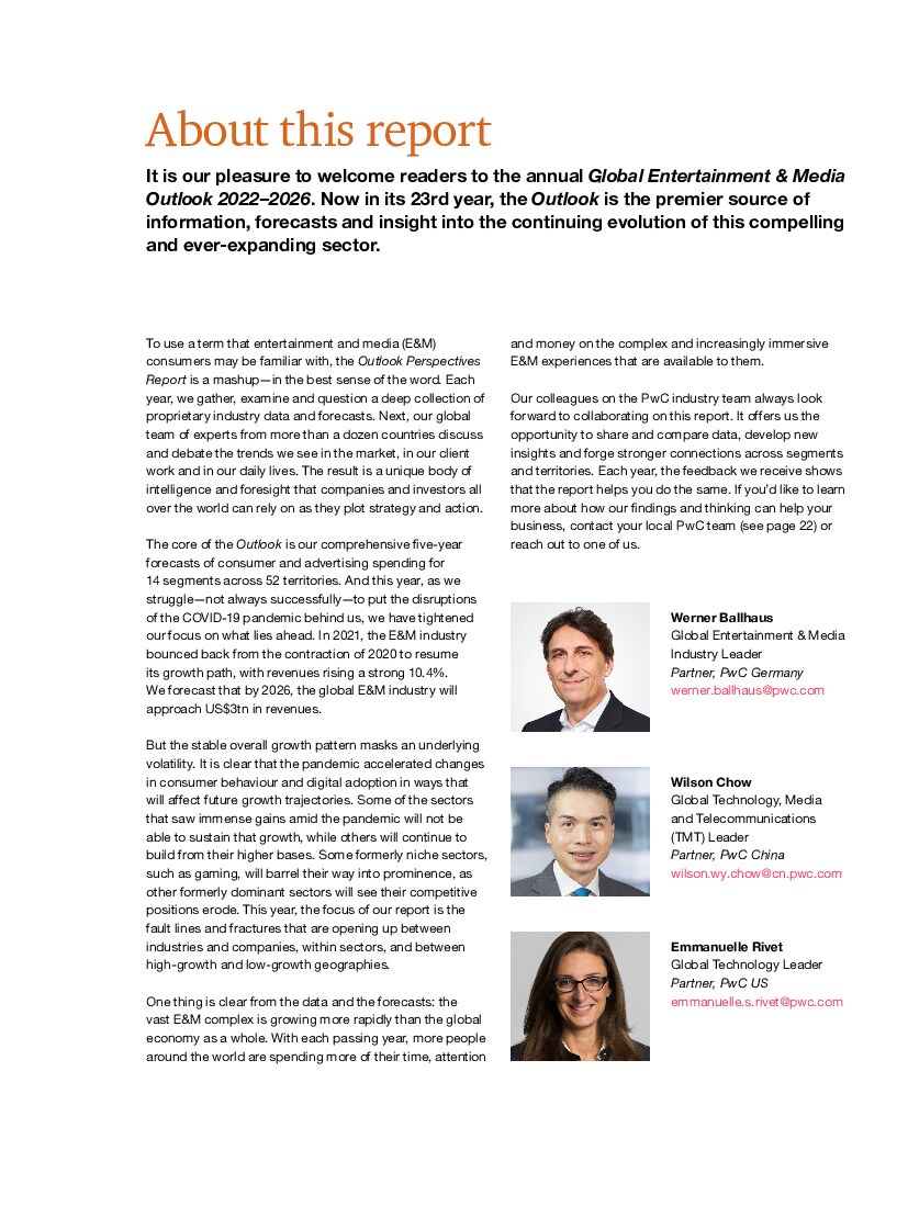 普华永道:全球娱乐及媒体行业展望:2022-2026年精要(英文版).pdf