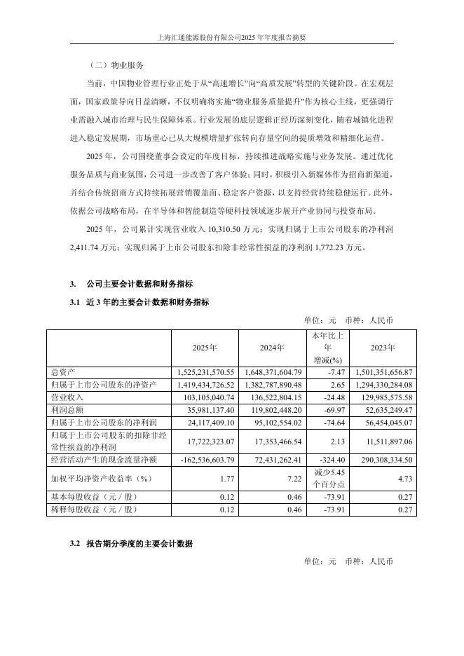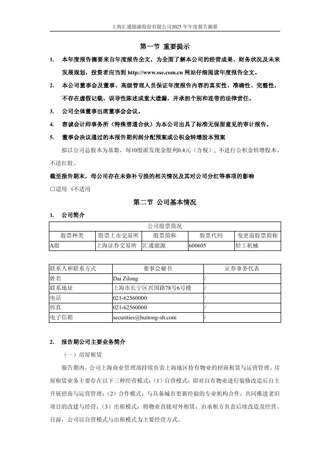 600605-汇通能源:上海汇通能源股份有限公司2025年年度报告摘要.pdf