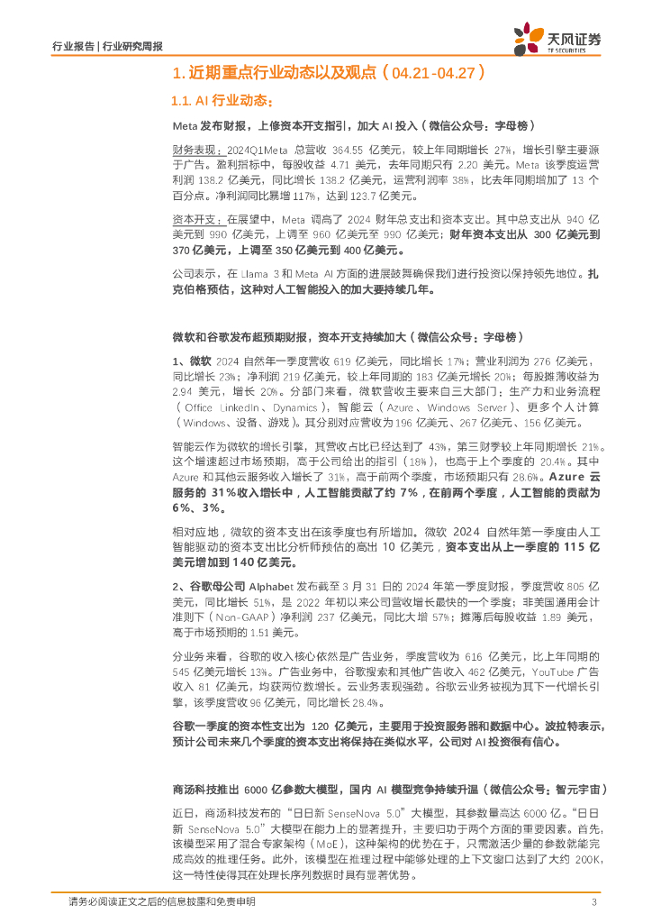 天风证券:通信行业报告:海外Capex指引超预期,国内AI竞赛再升温,持续看好算力.pdf
