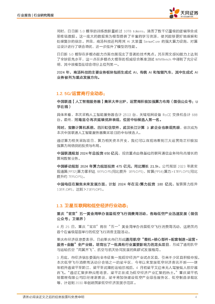 开源证券:电力设备行业周报:低空经济行业周报(第三十六期):中国移动主导首个低空经济共享设备标准立项,多地低空经济支持政