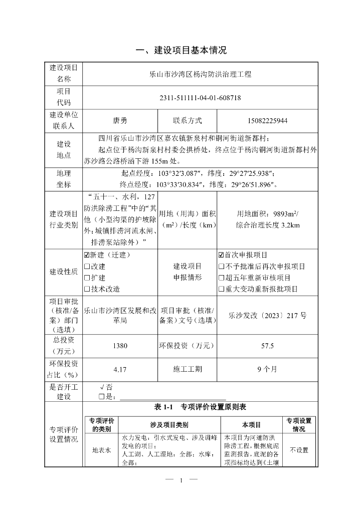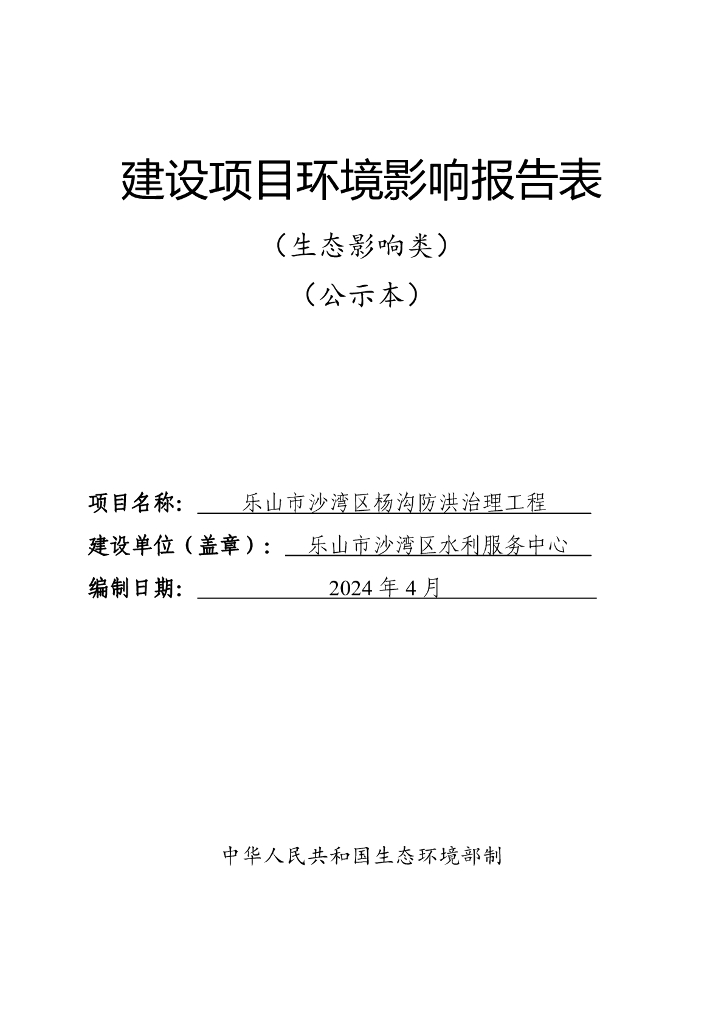 乐山市沙湾区杨沟防洪治理工程建设项目环境影响报告表(生态影响类)(公示本).pdf