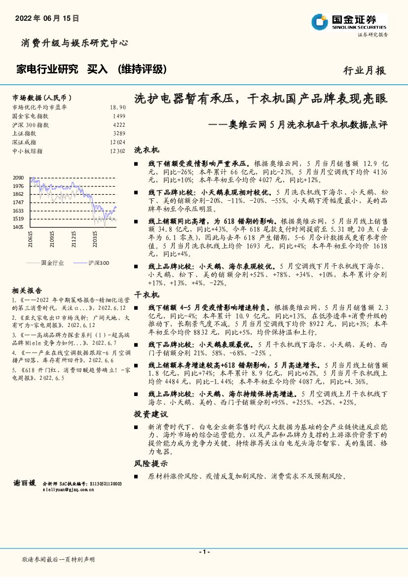 国金证券:家电行业研究月报:奥维云网5月洗衣机&干衣机数据点评-洗护电器暂有承压,干衣机国产品牌表现亮眼.pdf