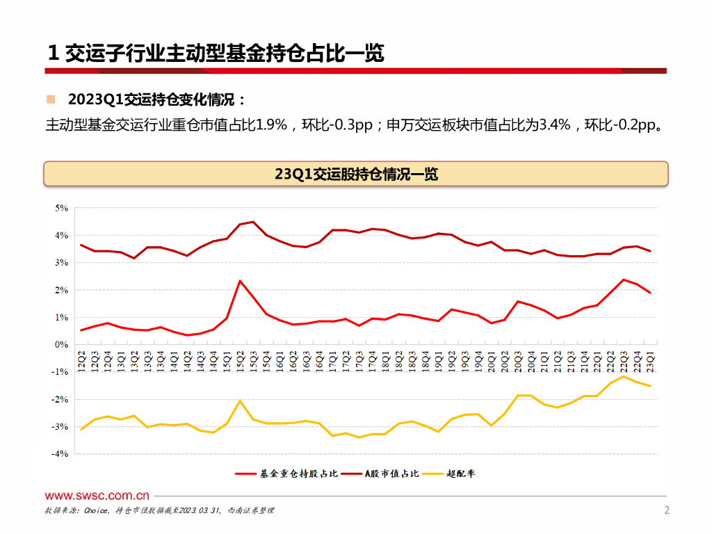 西南证券:交运行业2023Q1持仓分析:AI大热交运配比回落,中国需求支撑航运景气.pdf
