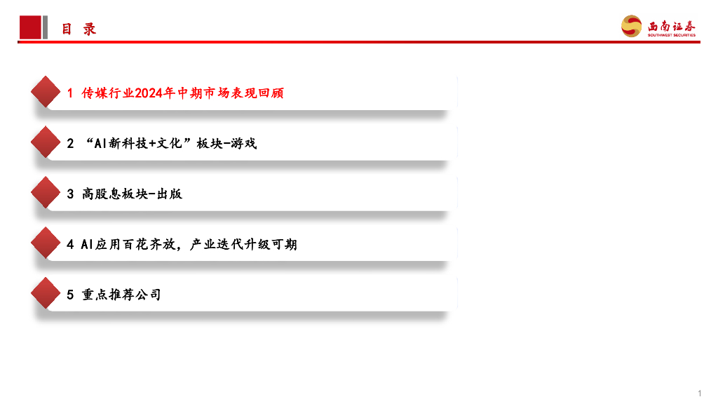 西南证券:传媒行业2024年中期投资策略:AI应用侧加速落地,关注“高股息+成长”两条主线.pdf