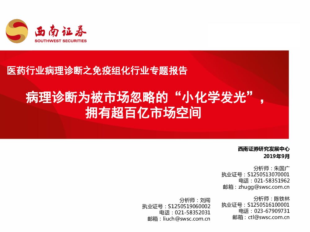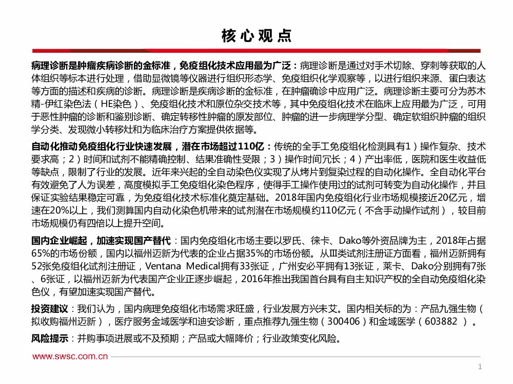 西南证券:医药行业病理诊断之免疫组化行业专题报告:病理诊断为被市场忽略的“小化学发光”,拥有超百亿市场空间.pdf