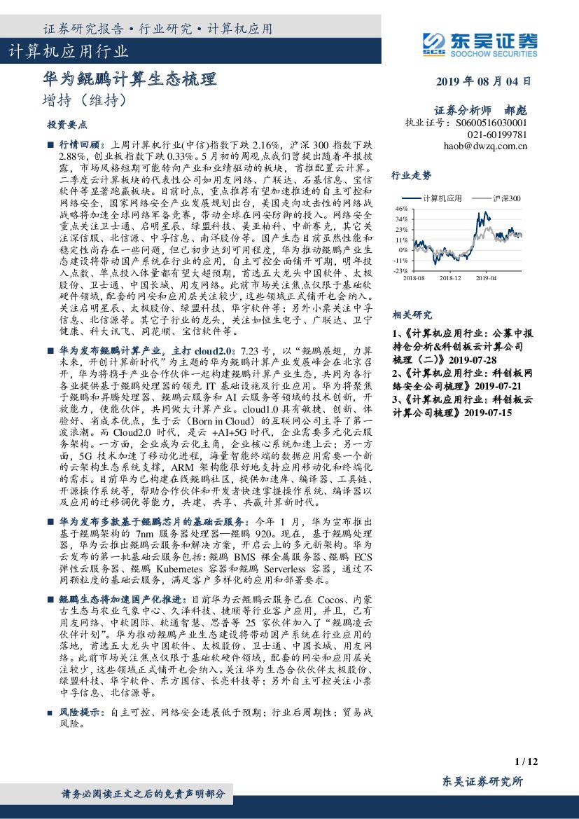 东吴证券:计算机应用行业:华为鲲鹏计算生态梳理.pdf