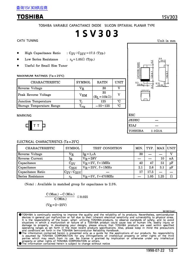TOSHIBA 1SV303 数据手册.pdf
