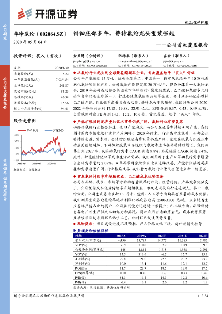 开源证券:华峰氨纶(002064)-公司首次覆盖报告:徘徊底部多年,静待氨纶龙头重装崛起.pdf