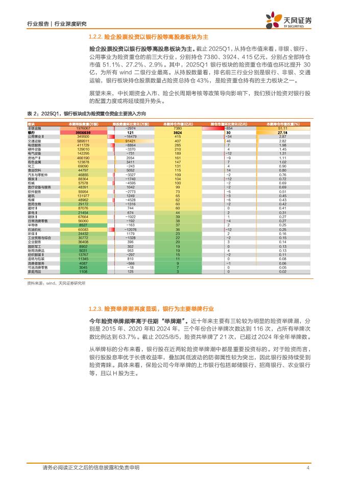 天风证券:银行行业深度研究:险资对银行股的增持空间还有多少?.pdf
