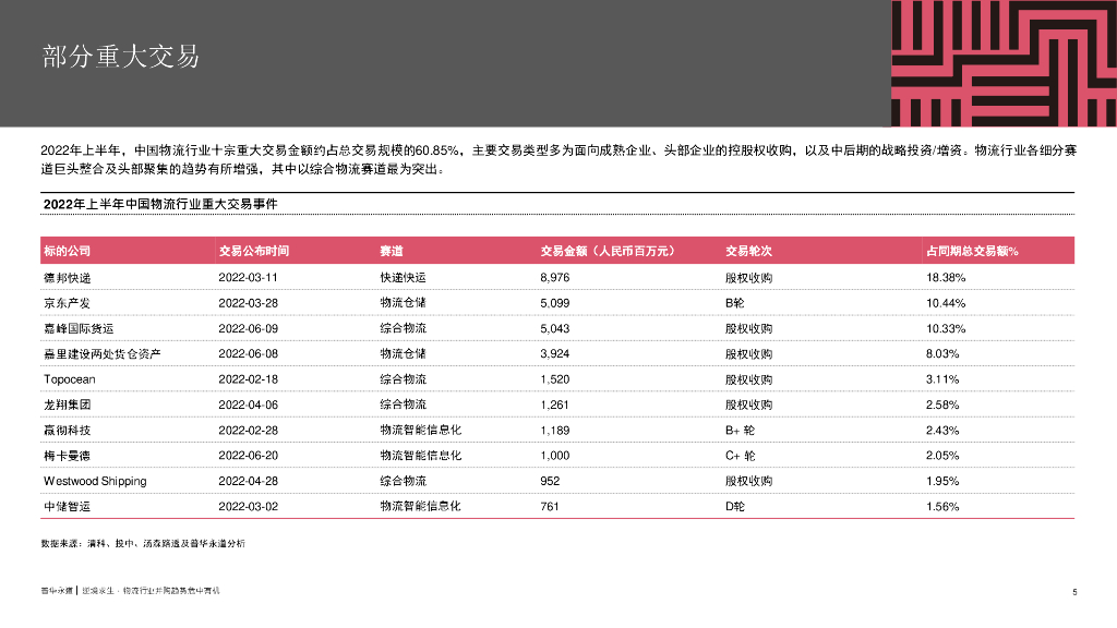普华永道:2022年上半年中国物流行业并购活动回顾及趋势展望.pdf