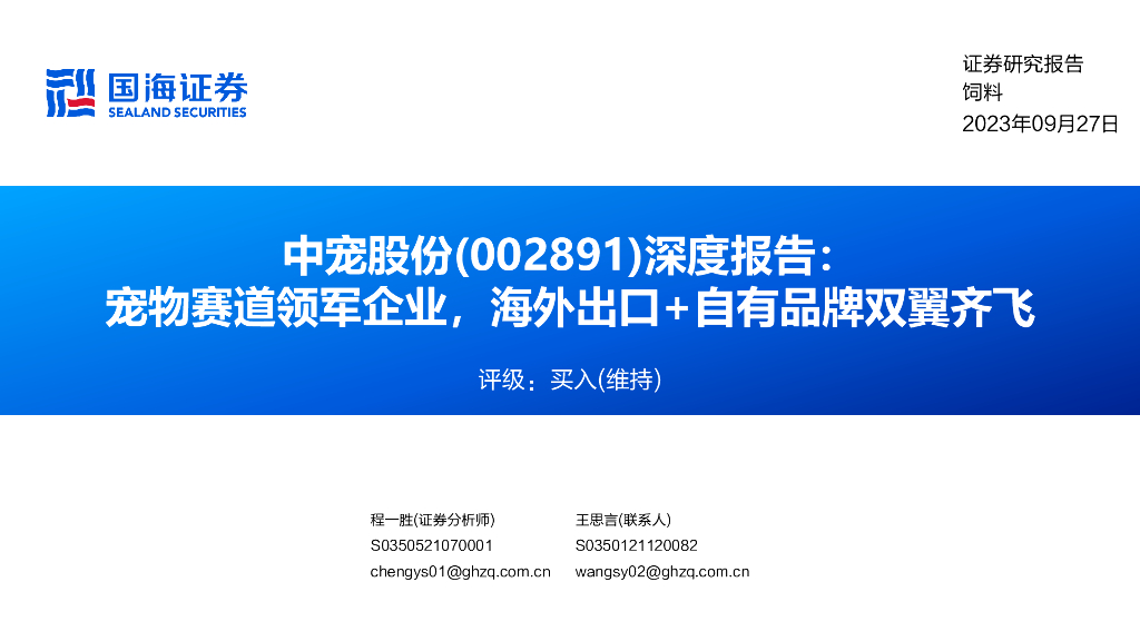 国海证券:中宠股份(002891)-深度报告:宠物赛道领军企业,海外出口+自有品牌双翼齐飞.pdf