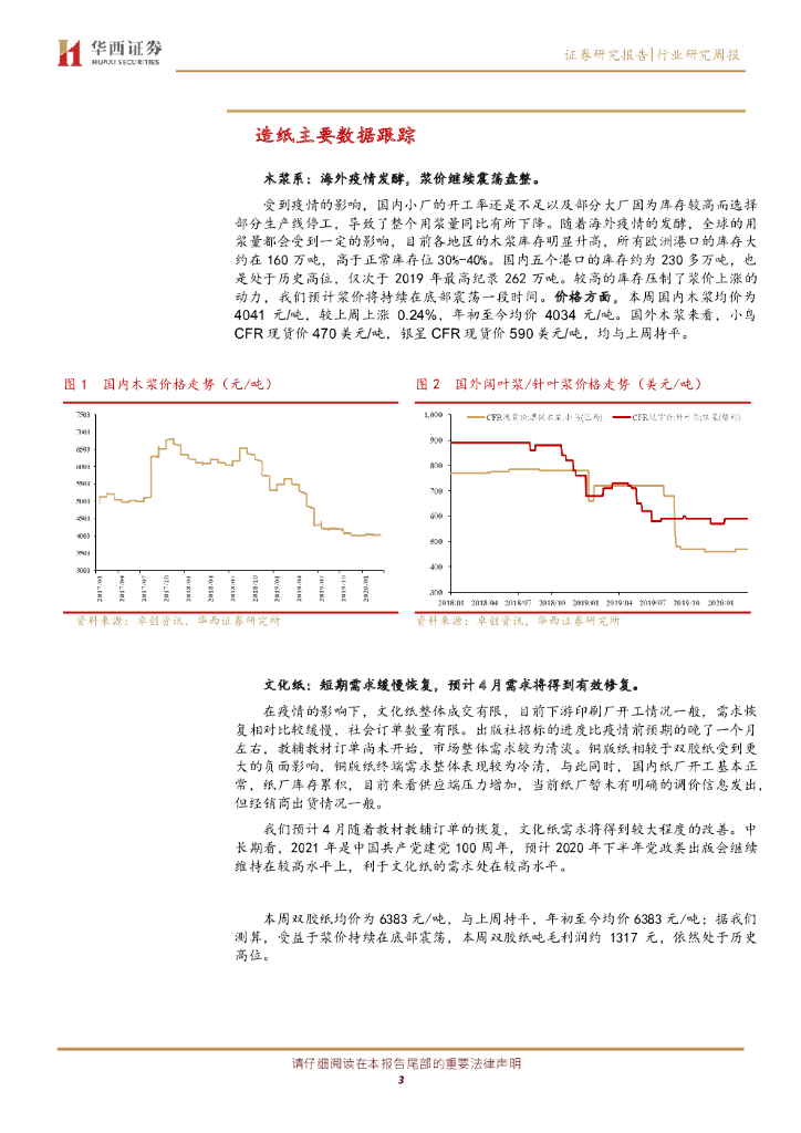 华西证券:造纸行业数据跟踪报告:海外疫情发酵,浆价继续震荡盘整,白卡纸有望持续提价.pdf