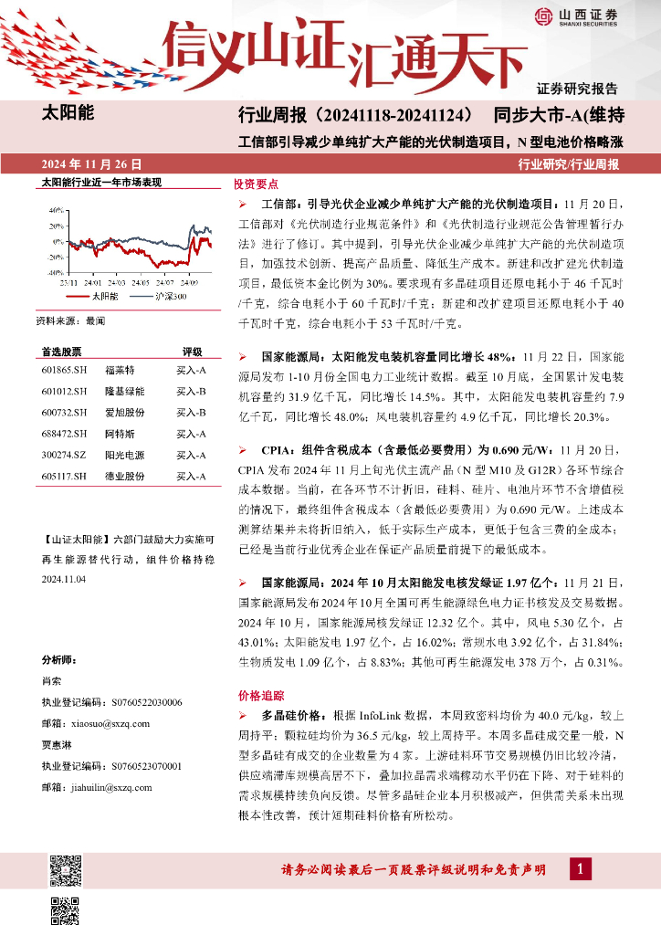 山西证券:太阳能行业周报:工信部引导减少单纯扩大产能的光伏制造项目,N型电池价格略涨.pdf
