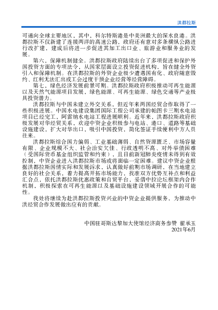 商务部:对外投资合作国别(地区)指南:洪都拉斯(2021年版).pdf