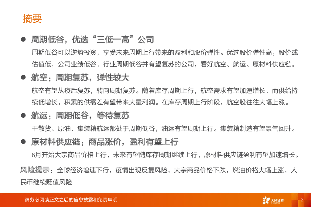 天风证券:交通运输行业专题研究:三低一高:看好航空、航运、原材料供应链.pdf