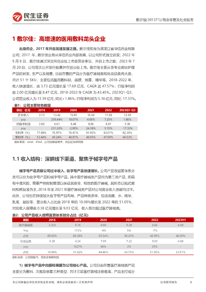 民生证券:敷尔佳(301371)-深度报告:产品+渠道+营销发力,医用敷料龙头高速成长.pdf