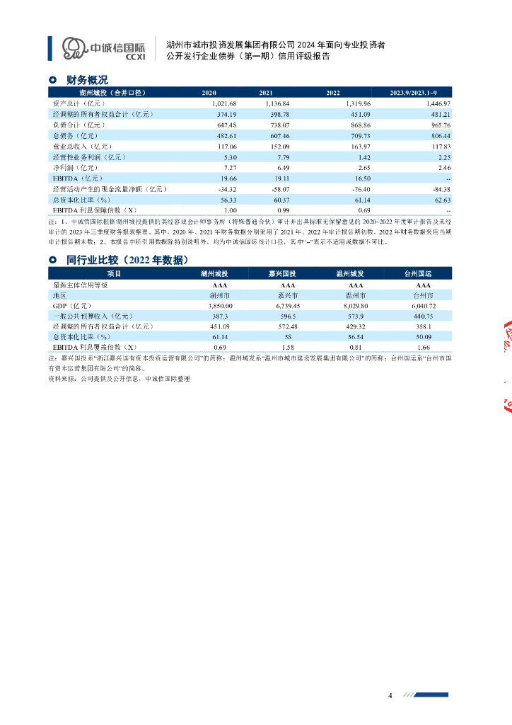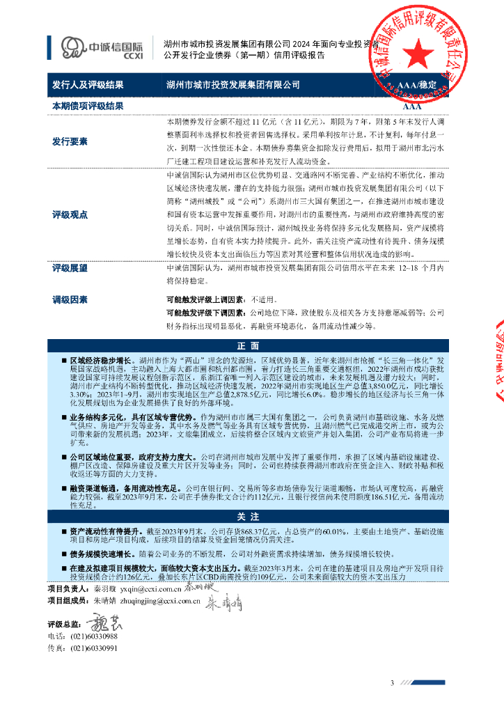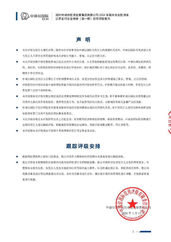中诚信:湖州市城市投资发展集团有限公司2024年面向专业投资者公开发行企业债券(第一期)信用评级报告.pdf