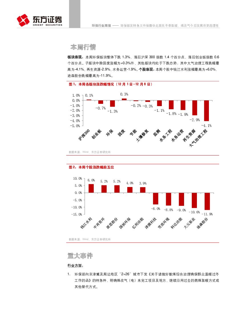东方证券:环保行业周报:环保部发特急文件保障华北居民冬季取暖,煤改气今后发展将更趋理性.pdf
