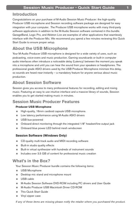 M-AUDIO SESSION MUSIC PRODUCER Quick Start Guide.pdf