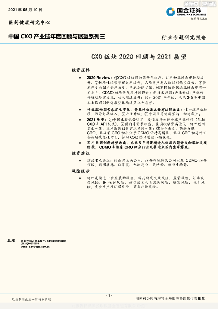 国金证券:中国CXO产业链年度回顾与展望系列三.pdf