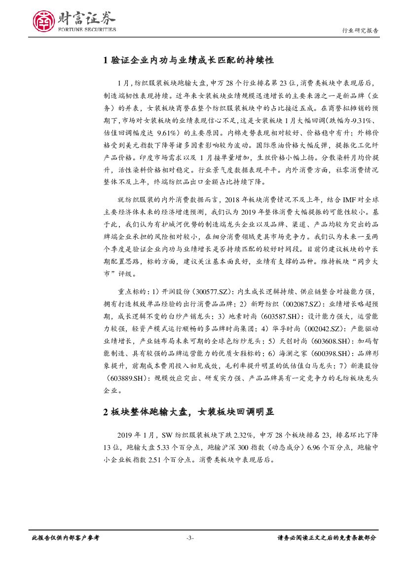 财富证券:纺织服装行业月度报告:验证企业内功与业绩成长的持续匹配性.pdf