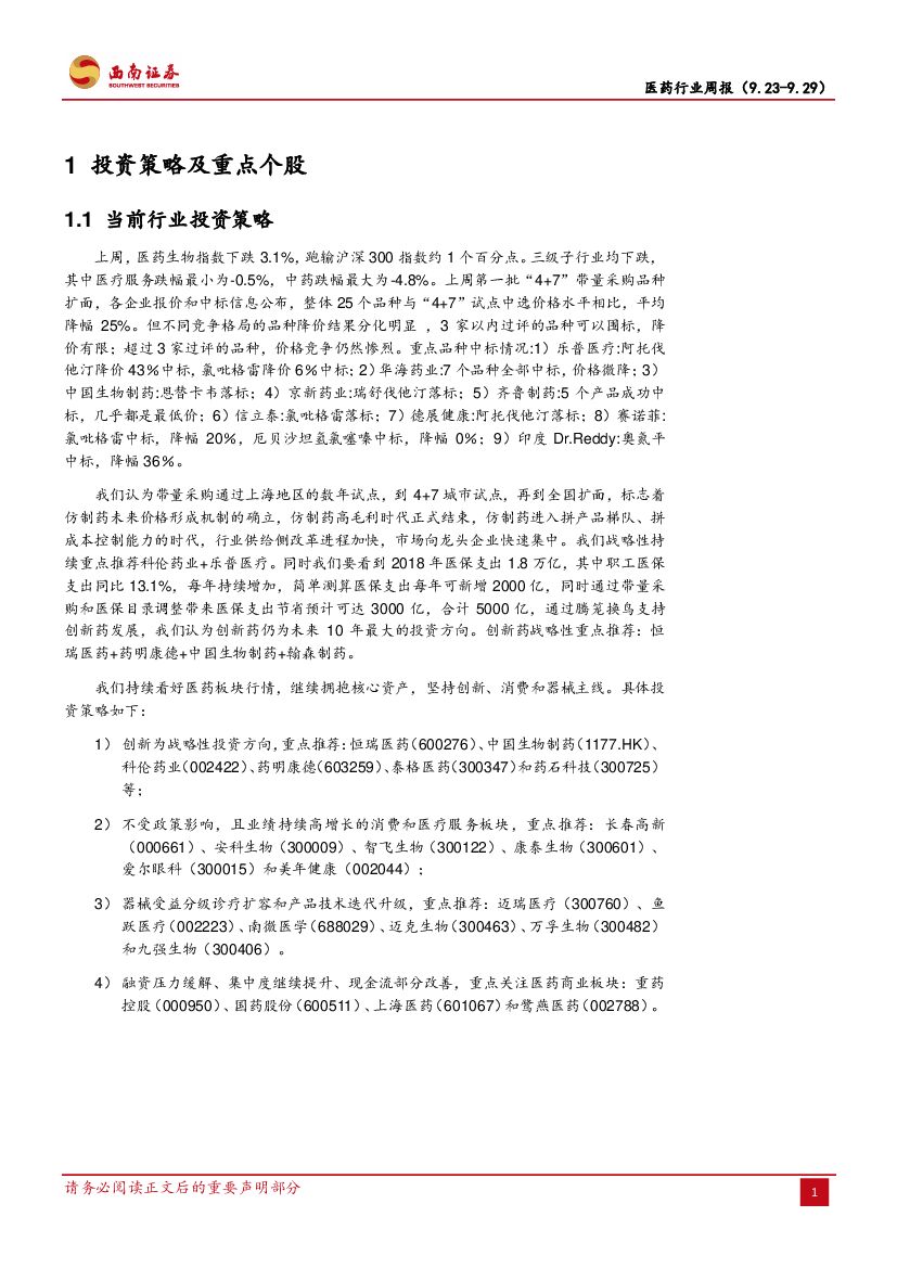西南证券:医药行业周报:带量采购扩面落地,转型创新不二选择.pdf