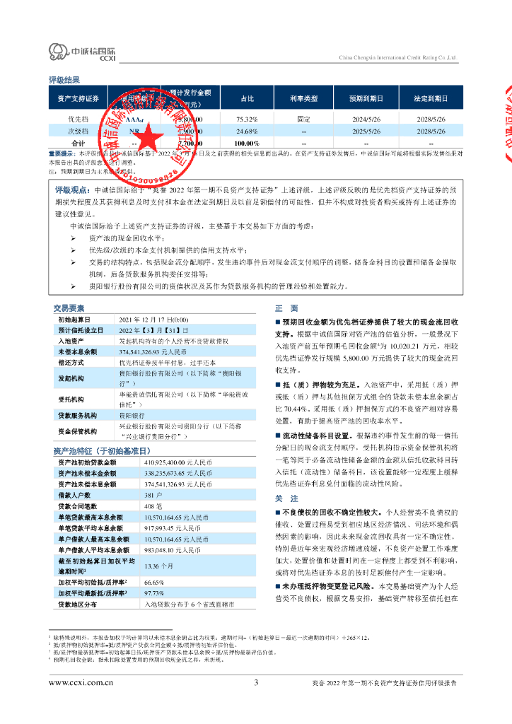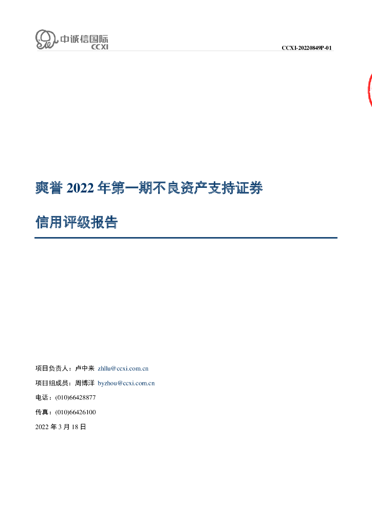中诚信:爽誉2022年第一期不良资产支持证券信用评级报告.pdf