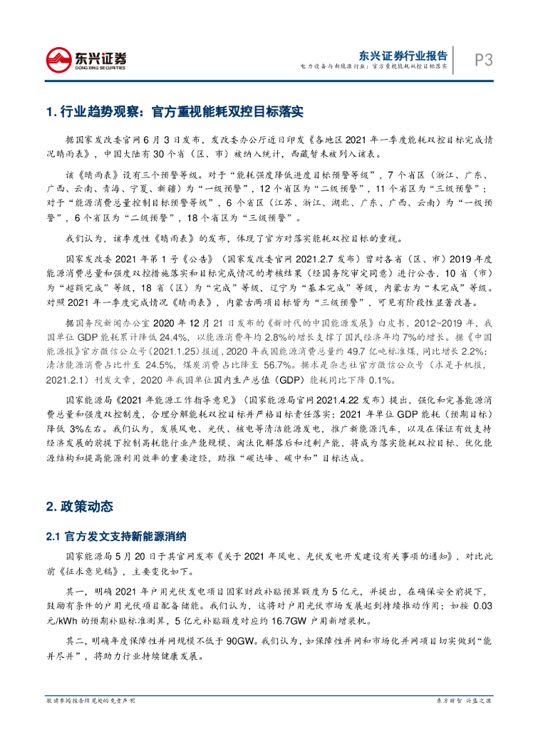 东兴证券:电力设备与新能源行业月报(2021年6月):官方重视能耗双控目标落实.pdf