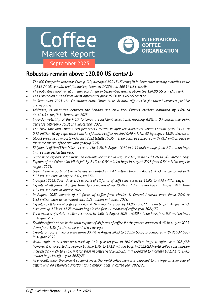 ICO国际咖啡组织:2023年9月全球咖啡市场报告(英文版).pdf