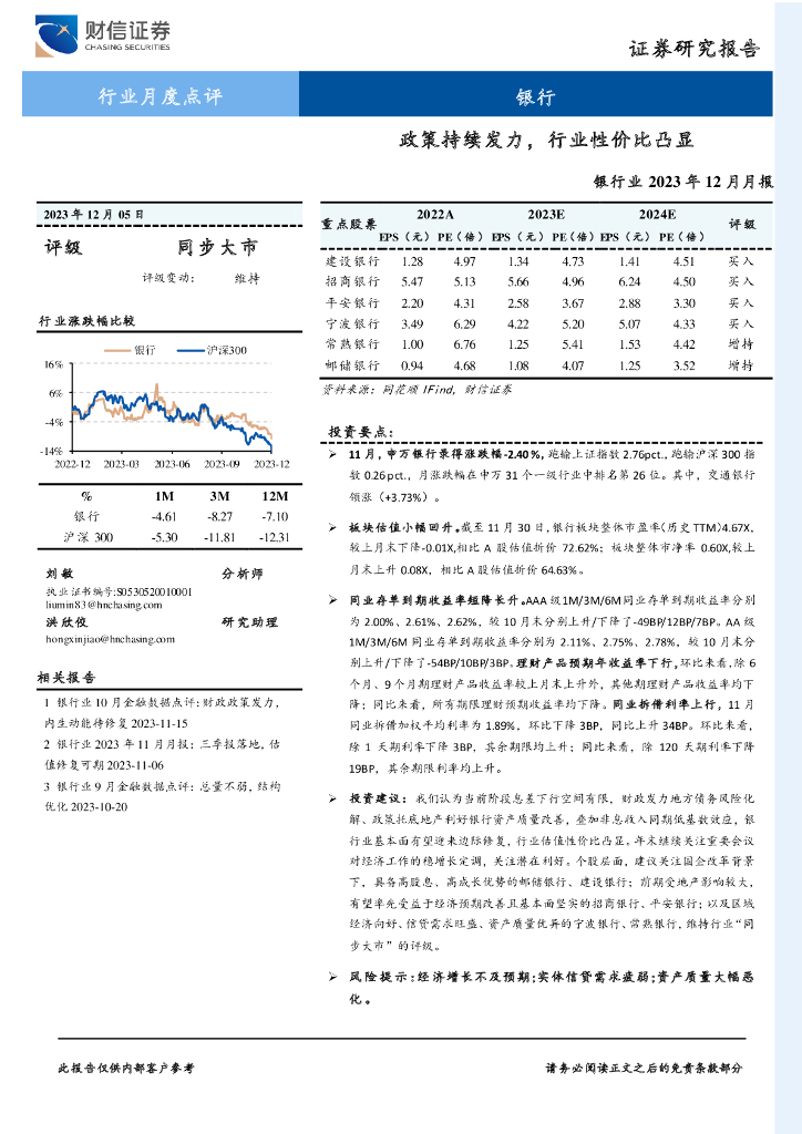 财信证券:银行业2023年12月月报:政策持续发力,行业性价比凸显.pdf