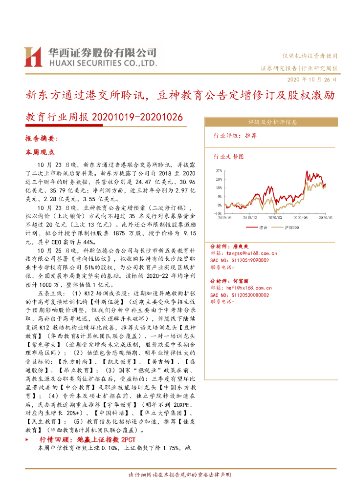 华西证券:教育行业周报:新东方通过港交所聆讯,豆神教育公告定增修订及股权激励.pdf