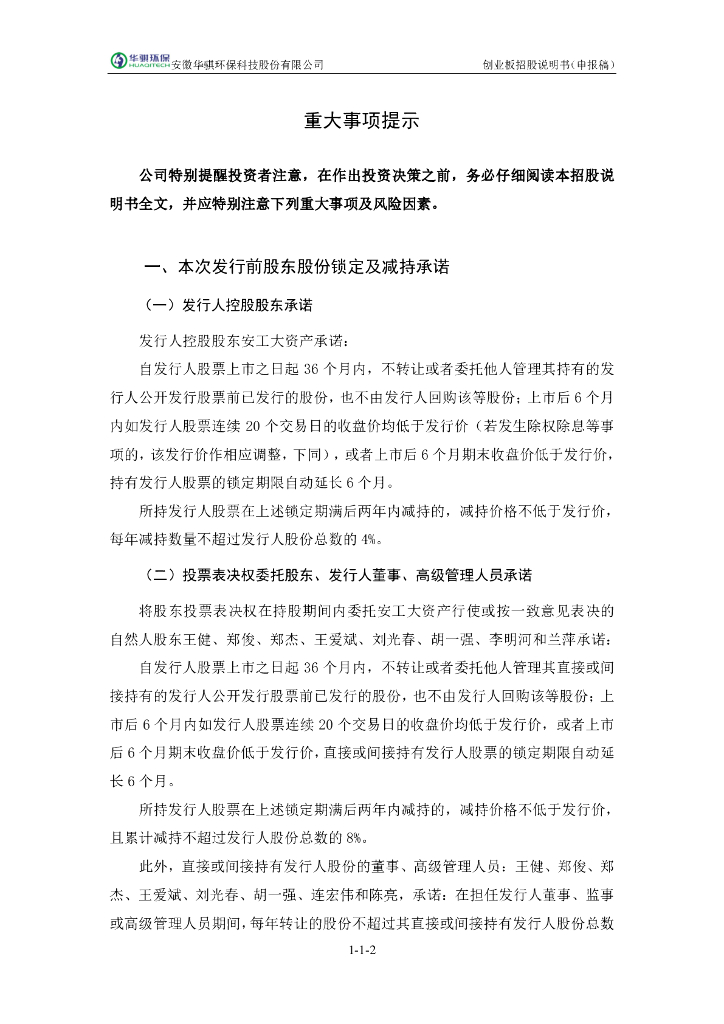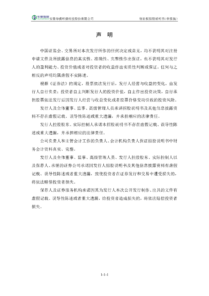 安徽华骐环保科技股份有限公司深交所创业板IPO上市招股说明书.pdf