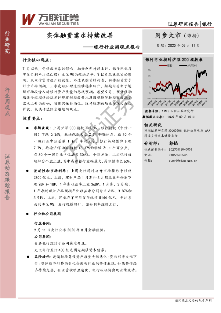 万联证券:银行行业周观点报告:实体融资需求持续改善.pdf
