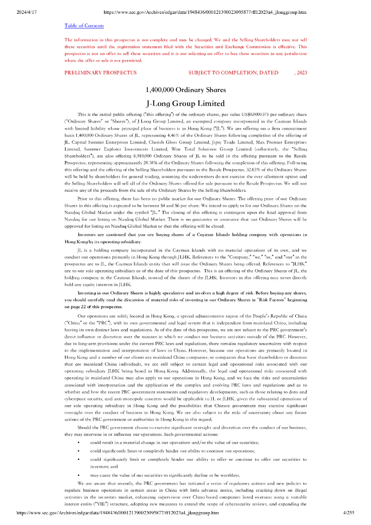 J-Long Group美股IPO上市招股说明书.pdf